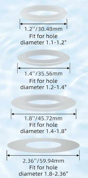 Also, we include 4 different rubber seal options of various sizes, as shows below, so that you can use the one that fits your sink best.